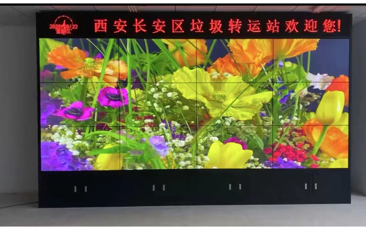 陜西西安城市生活垃圾處理中心這次采購是55寸液晶拼接屏,總共12塊,安裝方式是3*4機柜。