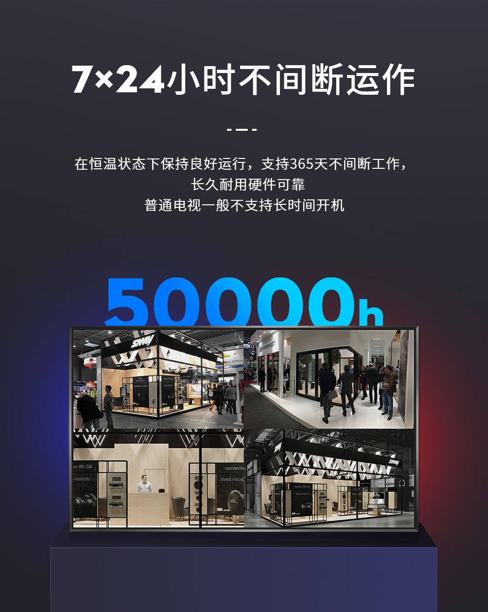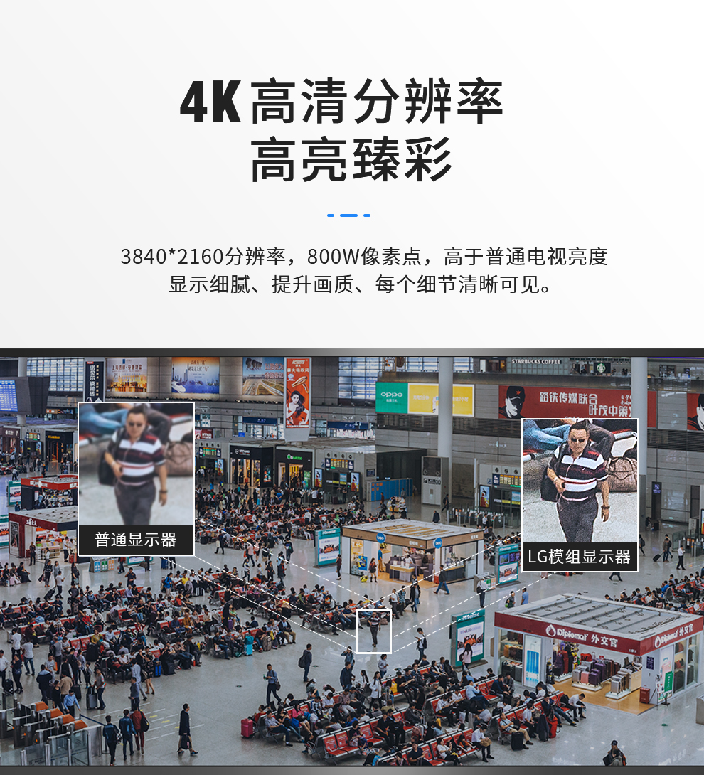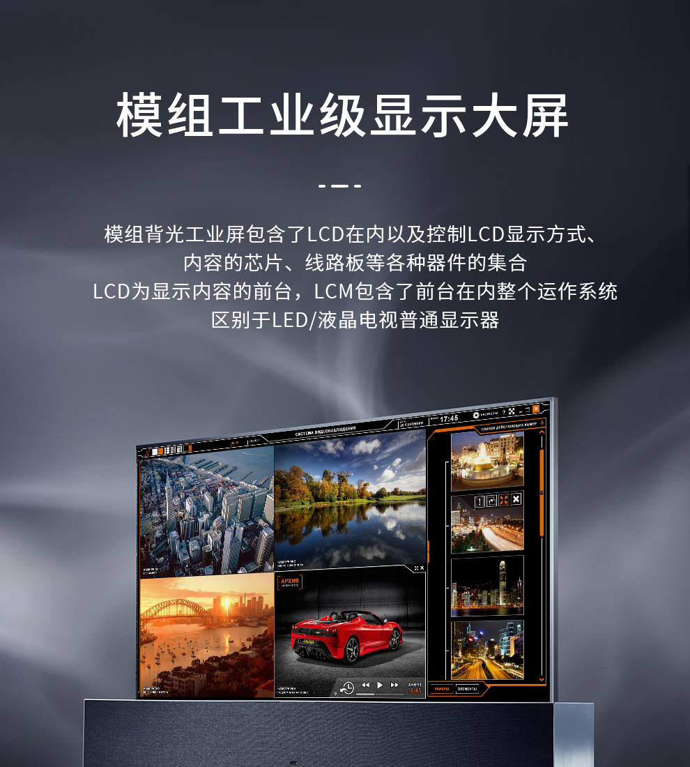 采用進口LG模組工業屏,4k高清畫面,7*24小時不間斷運作,178度廣視角,高速處理器主板,防塵防潮等特點。
